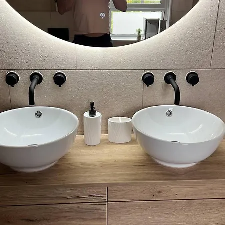 Bathroom facilities also include a bidet, a walk-in shower, and a separate toilet. There are hairdryers and bath sheets for guests' comfort.